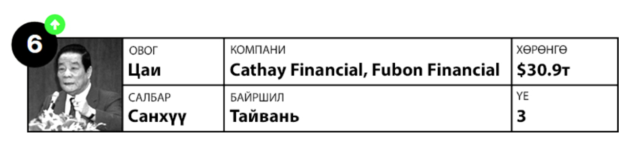 Ах дүү Цаи нар 1962 онд "Cathay Life Insurance" компанийг үүсгэн байгуулсан. Гэсэн ч тэд 1979 онд бизнесээ салгахаар шийдэж, Цай Ван-лин, Цай Ван-цай нар "Cathay Life Insurance" болон "Cathay Insurance" компанийг тус тус удирдаж эхэлсэн байна. Хэсэг хугацааны дараа "Cathay Insurance "компани нэрээ "Fubon Insurance" болгон өөрчилжээ. Өдгөө ах дүү Цаигийн удмынхан Тайванийн санхүүгийн хоёр том компанид хувь эзэмшдэг бөгөөд үл хөдлөх хөрөнгө, харилцаа холбоо зэрэг салбаруудад үйл ажиллагаагаа төрөлжүүлээд байна.