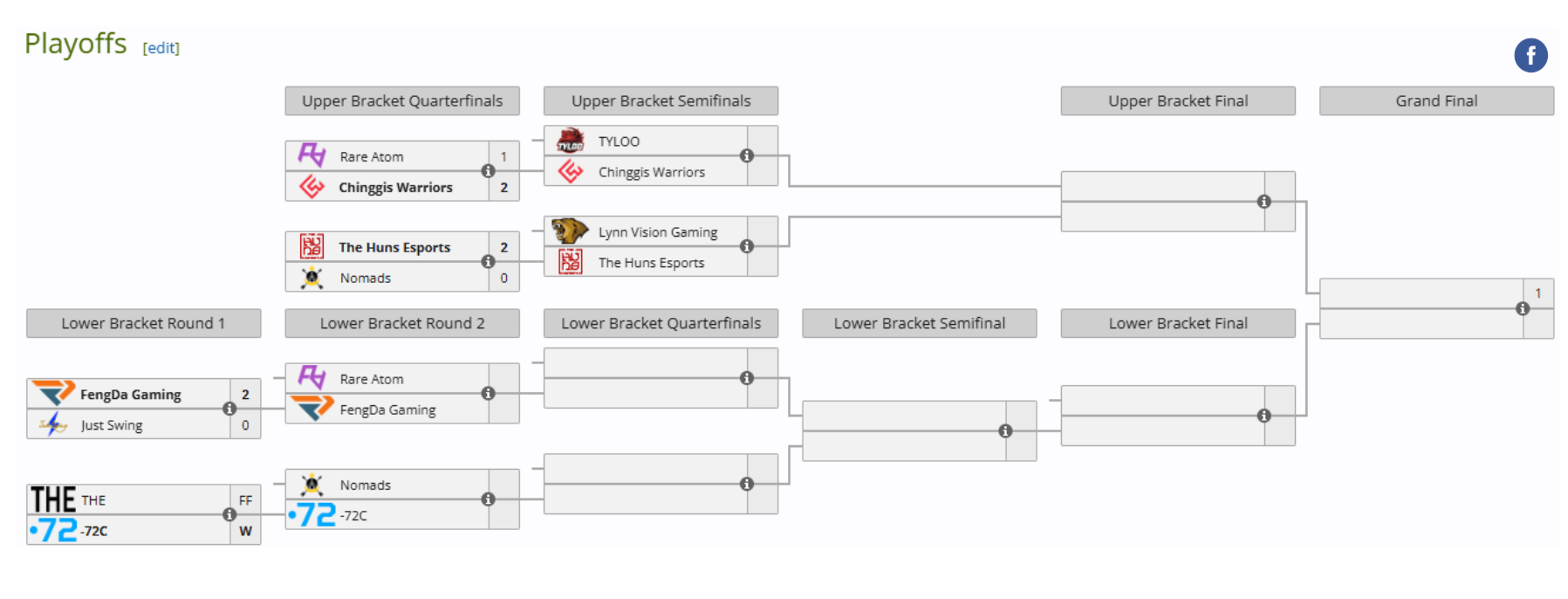 Ийнхүү тус хоёр баг шөвгийн дөрөвт шалгарсан бөгөөд өнөөдөр 20:00 цагаас Huns баг Хятадын "Lynn Vision Gaming" багтай, Chinggis Warriors мөн Хятадын "TYLOO" багтай тоглохоор тус тус оноолт таарлаа.