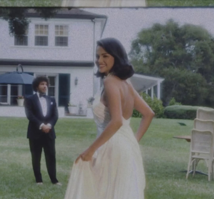 Дуучин бүсгүй Ralph Lauren-ийн цэцгэн чимэглэлтэй, нуруу ил гарсан хуримын даашинз өмссөн бол Бенни Бланко хар смокинг, зангиатай классик загвараар гоёжээ.