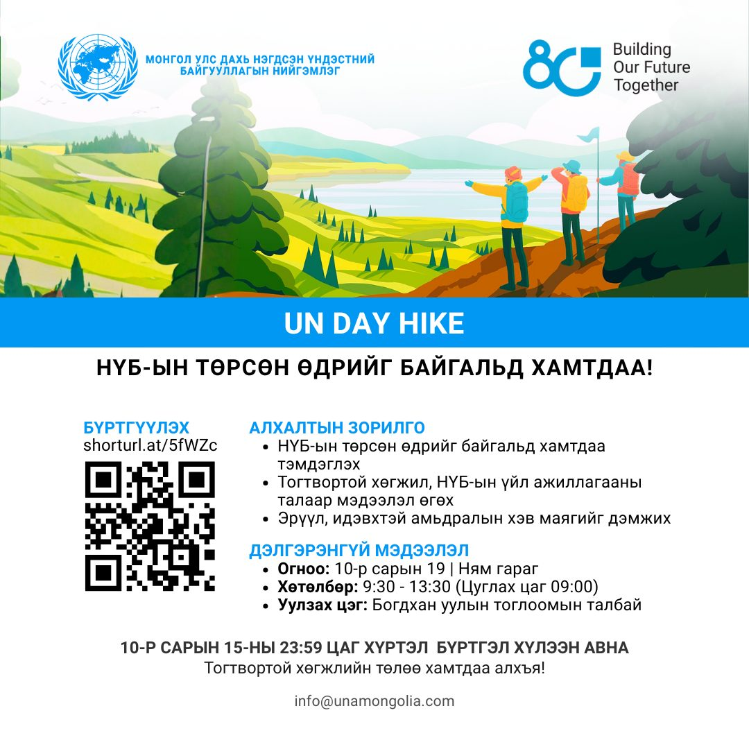 НҮБ-ын 80 жилийн ойг тохиолдуулан НҮБ-ын Нийгэмлэг нь цэвэр агаарт, чөлөөт цагаа зөв боловсон өнгөрүүлэх аялалд та бүхнийг урьж байна!