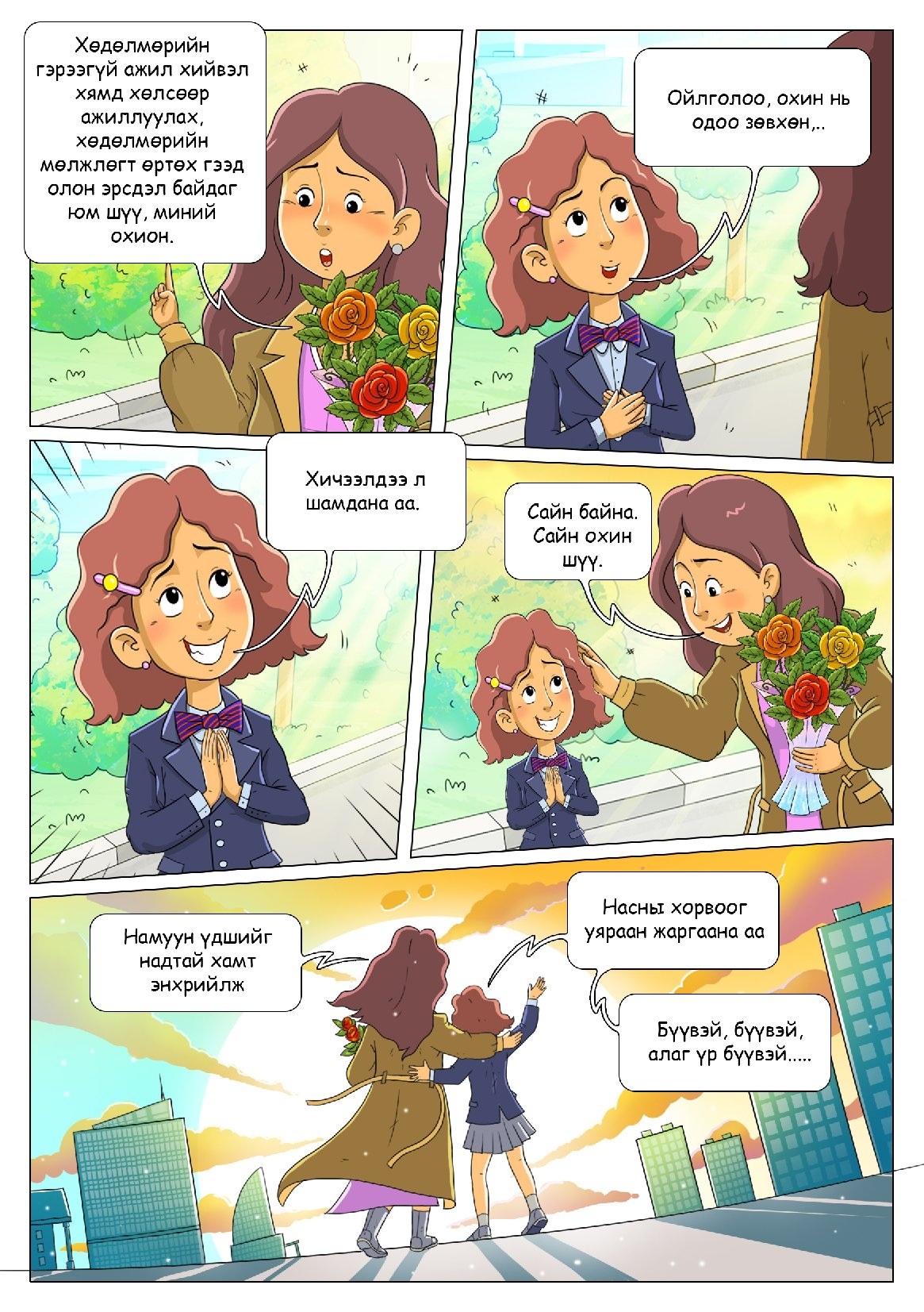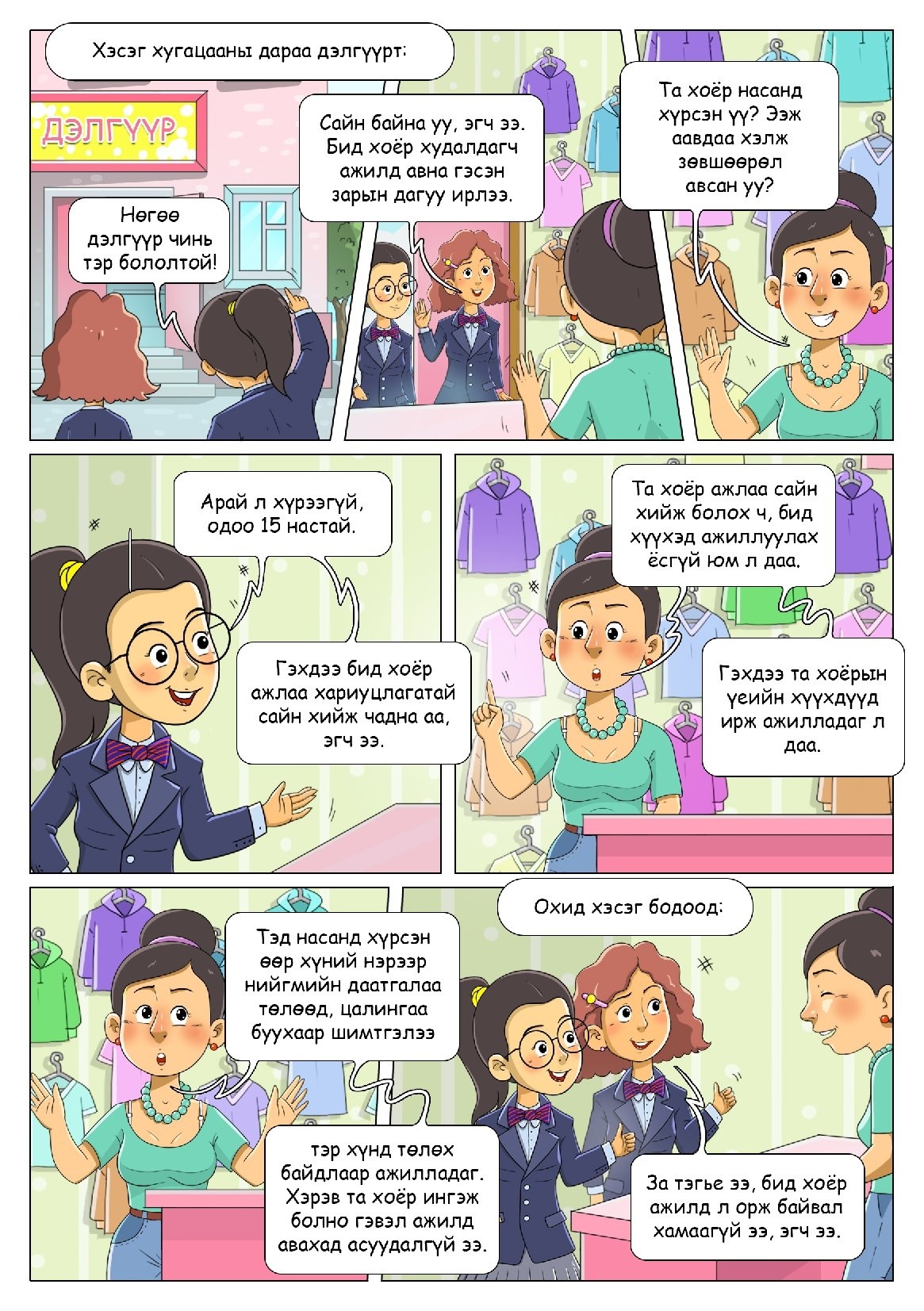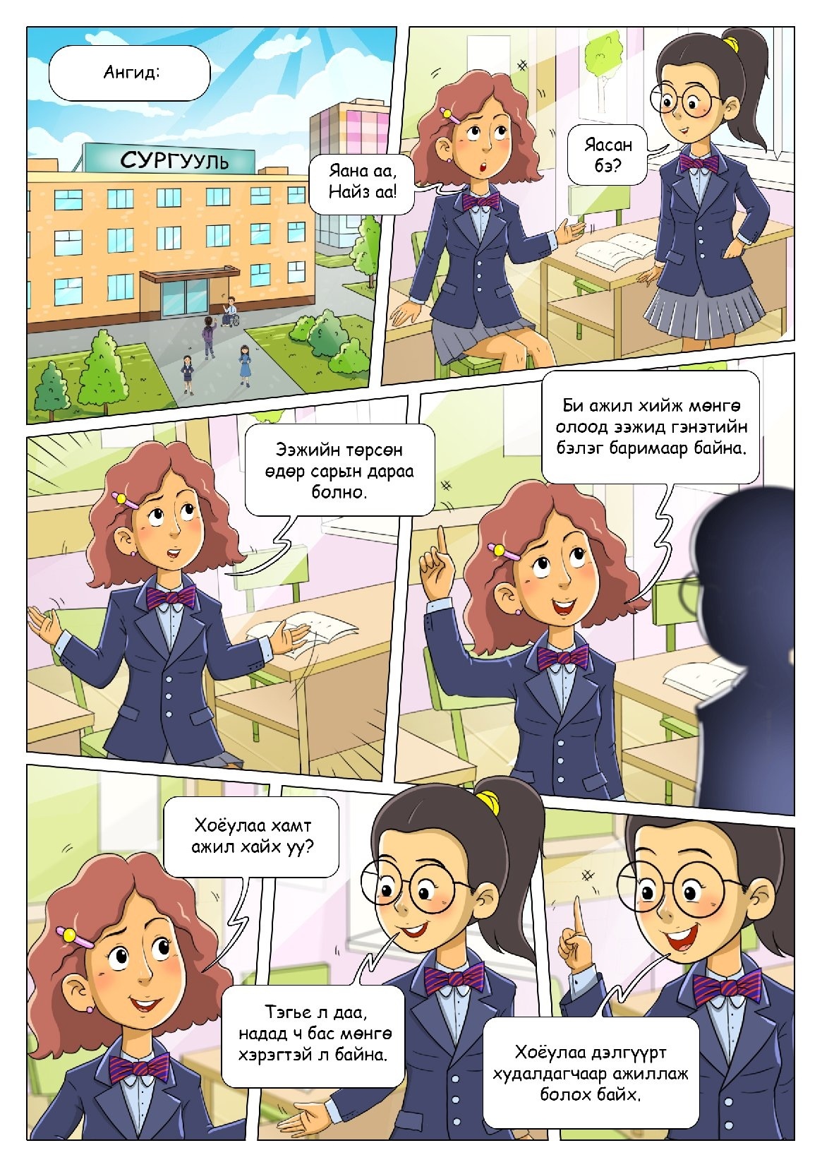 Гэвч зарим эцэг эх хүүхдээ “Ажил хийж сургана” гэх байдлаар хөдөлмөрийн насанд хүрээгүй байхад нь ажил эрхлүүлэх тохиолдол байдаг. Мөн хүүхдүүд өөрсдөө ч аав, ээж, асран хамгаалагчдадаа туслах зорилгоор бие даан шийдвэр гаргаж ажилд орох нь бий. Энэ нь хүүхдийг хөдөлмөрийн мөлжлөгт өртөх эрсдэлийг бий болгож буйг дараах комикоор сануулъя.