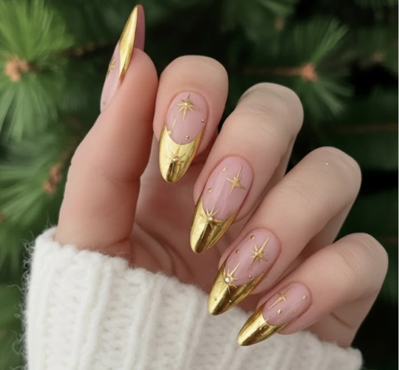 Өнгөрсөн жил баярын улиралд бүхэлдээ алтлаг маникюр маш их трэнд болж байв. Энэ жил алт нь хэвээрээ ч илүү тансаг, нарийн хэлбэрээр ашиглагдаж байна. Бүхэлдээ алт биш, харин нарийн чимэглэлээр дизайныг тодруулж байна.