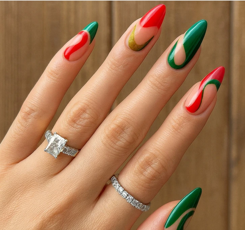 Мушгирсан дизайн нь уламжлалт өнгөнүүдийг орчин үеийн өнгө аястай хослуулж, баярын дүр төрхийг бий болгодог.