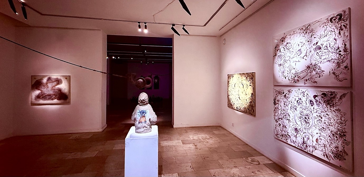 Үзэсгэлэнгийн хоёр танхимыг гэгээлэг ба бараан орчноор шийдсэн нь сонирхол татахаас гадна, орон зайг бүтээлүүддээ уялдуулжээ. Баруун гарын дүрмээр гэрэлтүүлэгтэй танхим руу ороход өрөг урлагийн бүтээлүүд хана таазнаас өлгөсөн нь сонирхол татна.