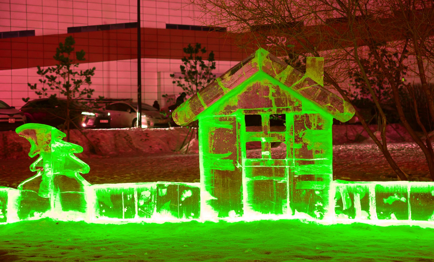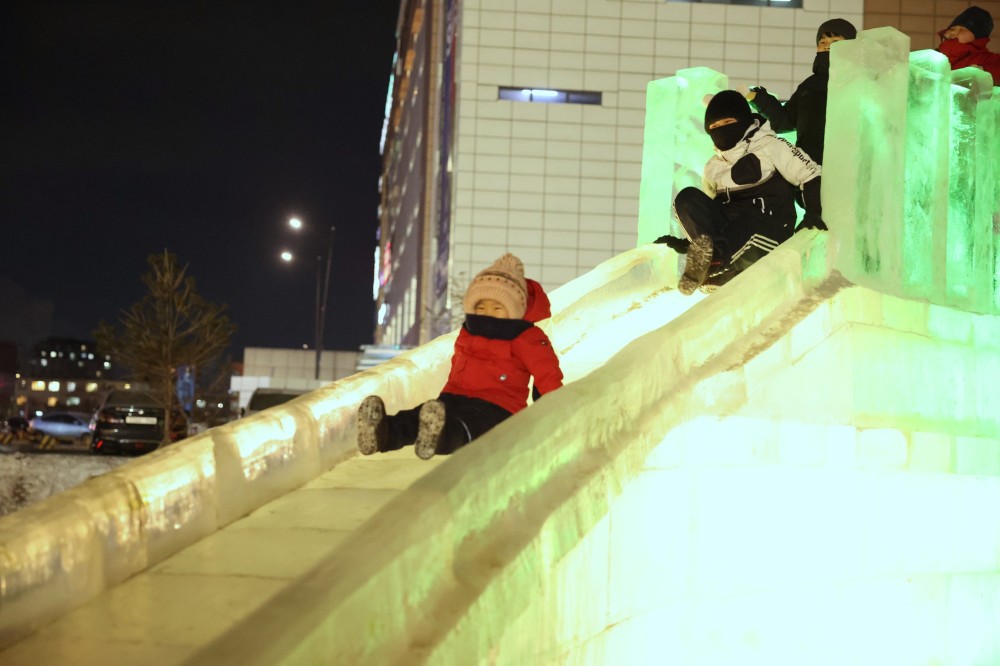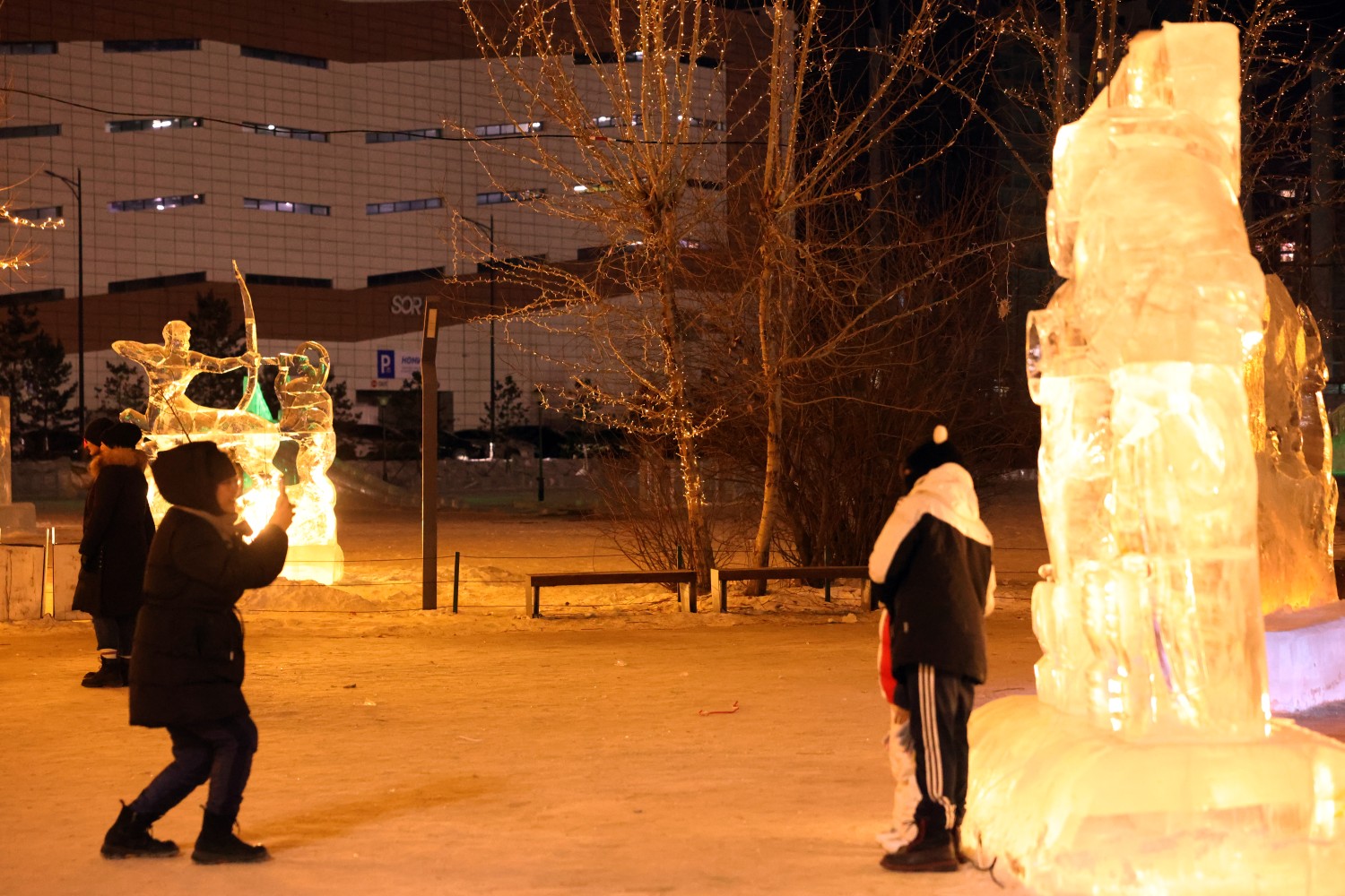 Төв цэнгэлдэх хүрээлэнгийн баруун талд хүүхэд залуус, иргэд чөлөөт цагаа өнгөрүүлэх боломжтой мөсөн гулгуур, тэшүүрийн талбай, амьтдын баримал, сүлд мод, гэрэлтүүлэг, чимэглэл бүхий мөсөн хотхон урлажээ.