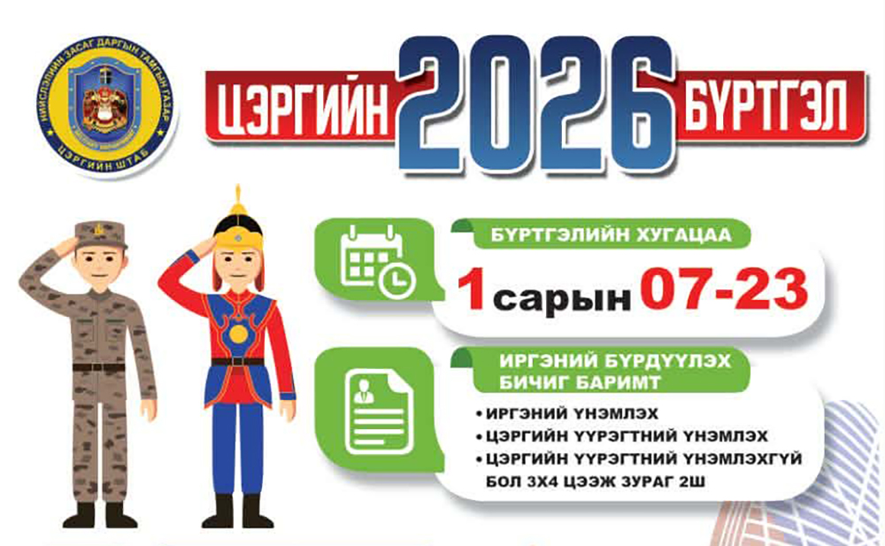 2026 оны цэргийн бүртгэлийг нийслэлийн хэмжээнд нэгдүгээр сарын 7-23-ны өдрүүдэд зохион байгуулна.