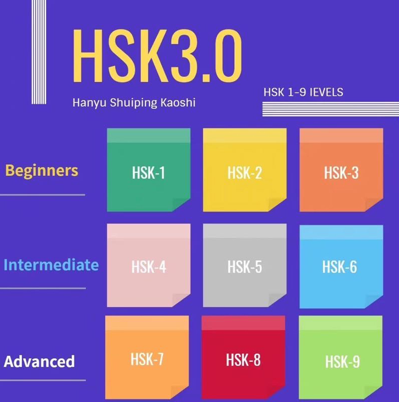 Шинэ HSK 3.0 систем нь хуучин 1-6 түвшний оронд 9 түвшний бүтэцтэй болгож өргөжүүлсэн нь өөрчлөлтийн гол агуулга юм. Дээрэх 9 түвшин нь эхний 3 нь анхан шат, дараагийн 3 нь дунд шат, сүүлийн 3 нь өндөр буюу мэргэжлийн түвшний чадварыг үнэлэхэд зориулагдсан байна.
