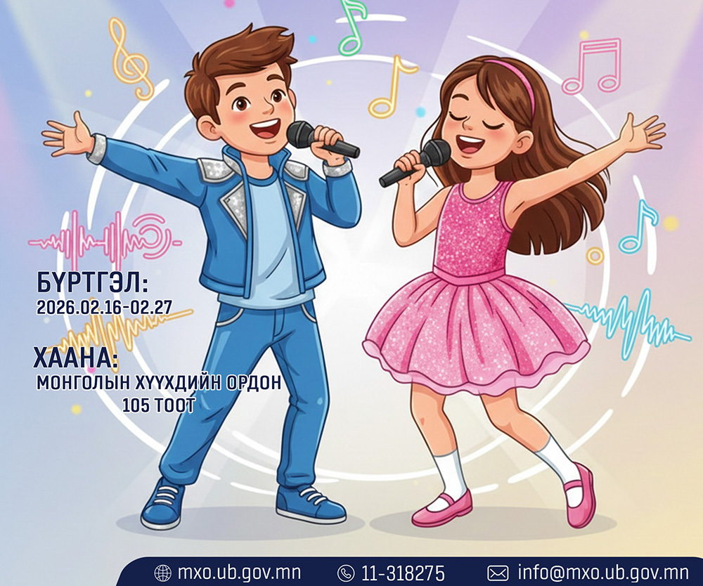 Бүртгэл 2026 оны 2 дугаар сарын 16-27-ны өдрийн 16:30 хүртэл Монголын Хүүхдийн ордны сургалтын албаны 105 тоотод бүртгэнэ. Удирдамжтай ЭНД дарж танилцана уу.