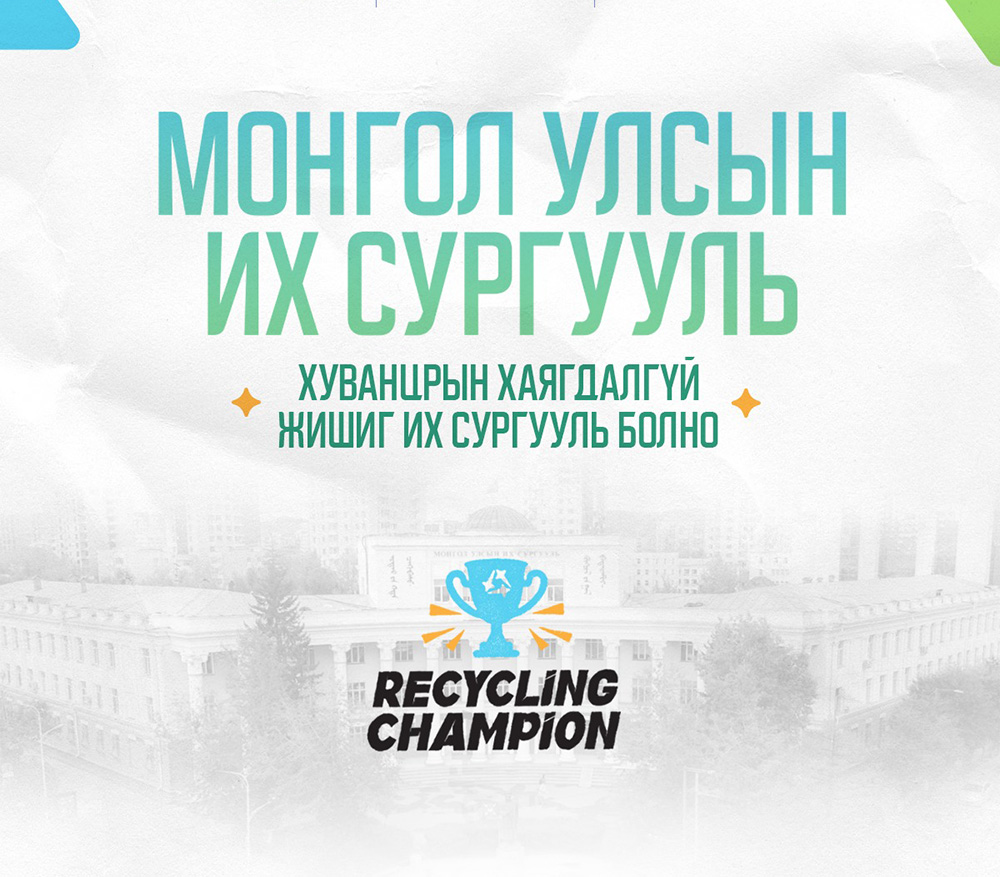 Монгол Улсын Их Сургууль ирэх таван жилийн стратеги зорилтын дагуу дагуу багш, ажилтан, оюутнуудад хог хаягдлаа ангилж ялгах дадал хэвшил төлөвшүүлэх зорилготой “Recycling Champion” уралдааны зохион байгуулах гэж байна.