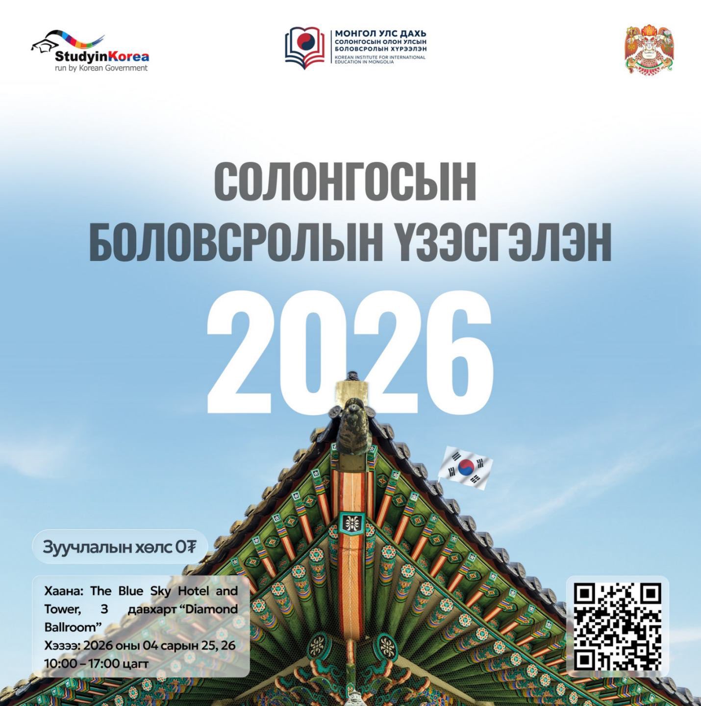 Монгол Улс дахь Солонгосын олон улсын боловсролын хүрээлэнгээс "Солонгосын боловсролын үзэсгэлэн 2026"-г зохион байгуулна.
