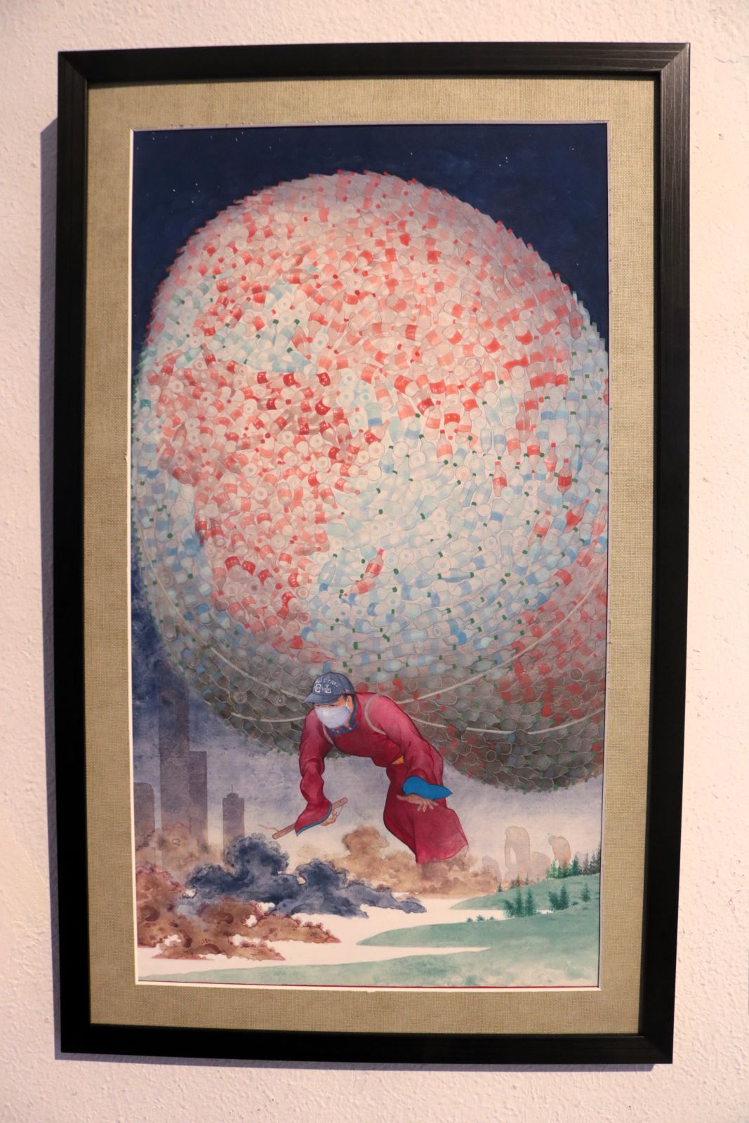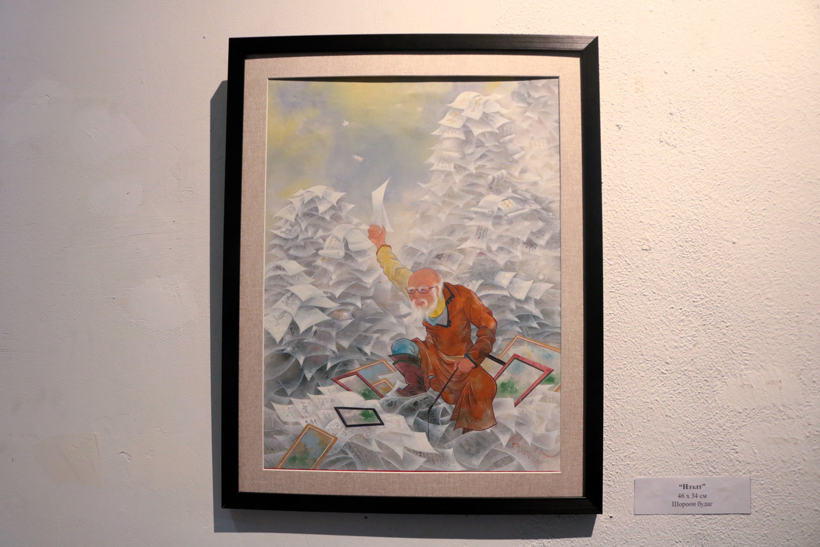Тус үзэсгэлэнд нийт 25 орчим бүтээл дэлгэгдсэн ба түүний бүтээлүүдийн гол онцлог нь маш гүн гүнзгий утга агуулгаар дүүрэн бөгөөд дүрсний сонголт илэрхийлэл нь маш зөв оновчтой байдгаараа онцлогтой юм.