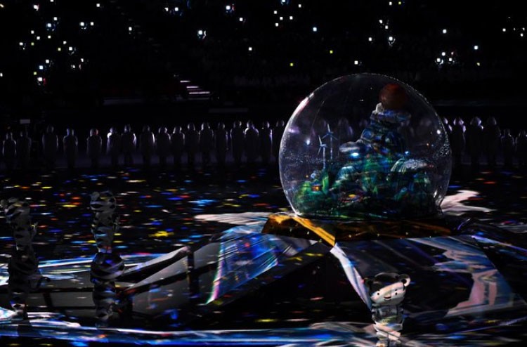 Ингээд Пёнчаны өвлийн олимпийн хаалтын ёслолын ажиллагааны зургийг толилуулж байна.