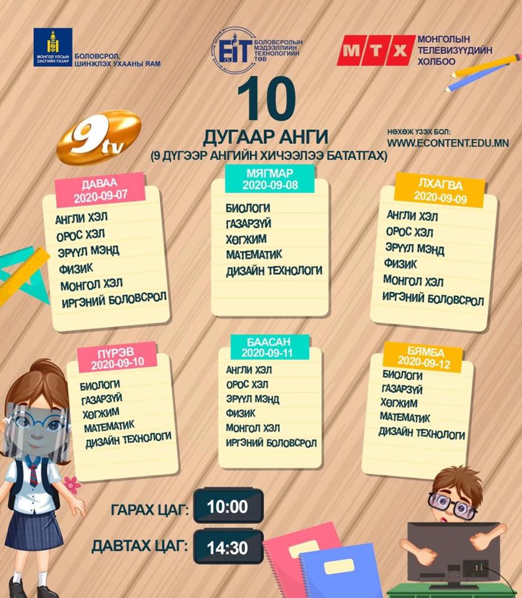 Энэ хичээлийн жилийн эхний сард сурагчид сургуулиас гаргасан хуваарийн дагуу ангидаа очиж суралцахын сацуу, сургуульд очихгүй өдрөө хичээлээ телевизээр хүлээн авч үзэх юм.