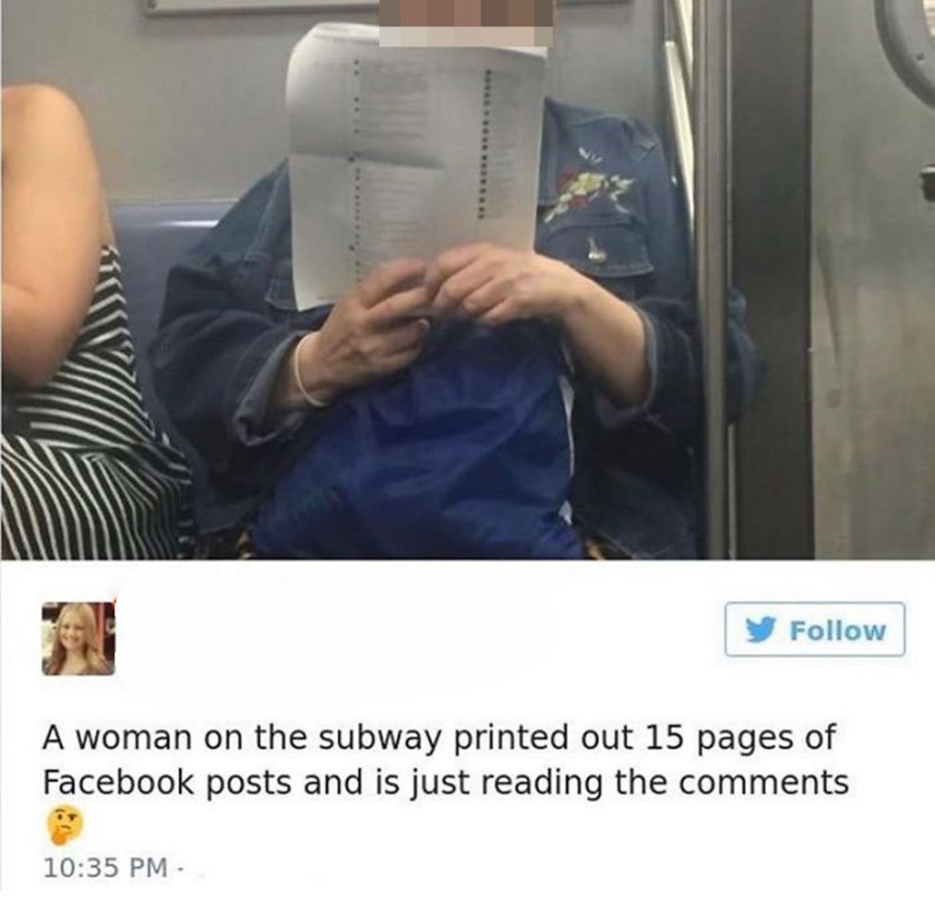 Энэ эмэгтэй харин 15 хуудас Фэйсбүүкийн нийтлэлүүд хэвлээд сэтгэгдлүүдийг нь уншиж явна гэнэ. Хажуудаа попкорн тавьчихвал тэгээд л...