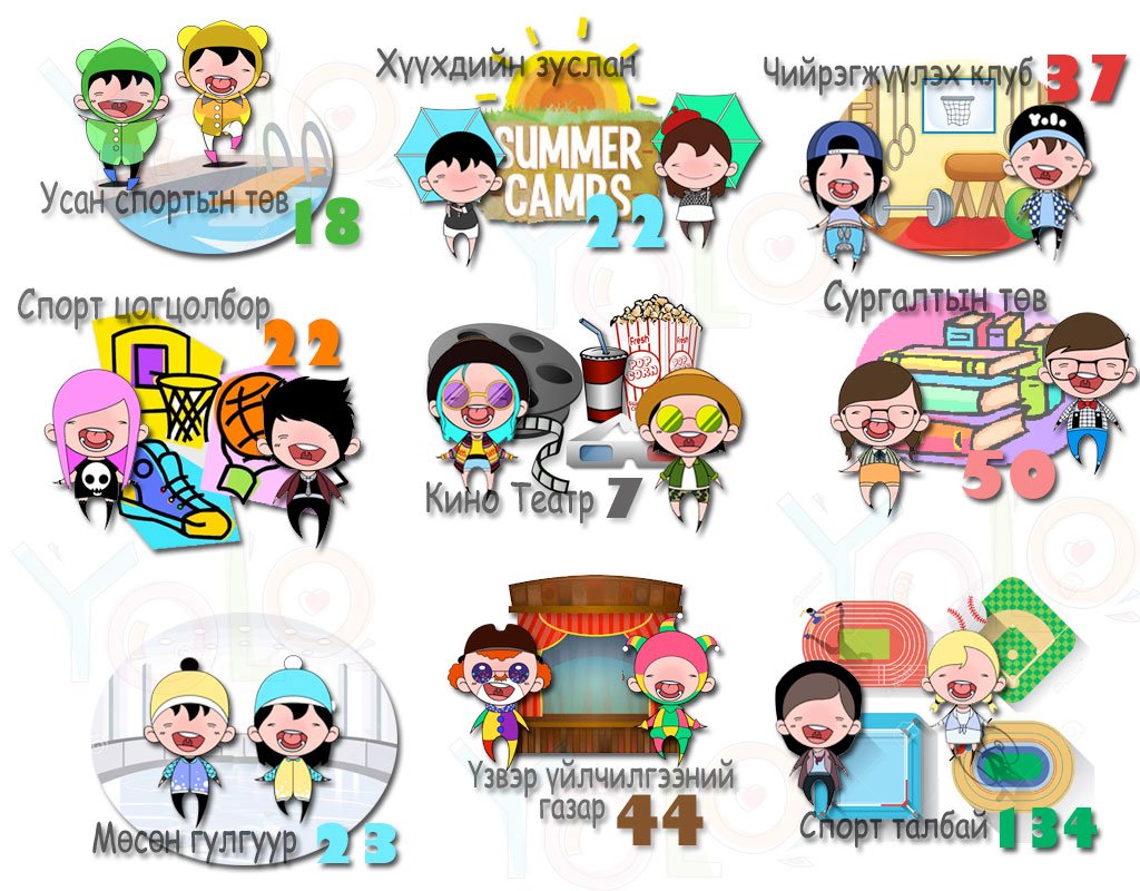 Нийслэлийн хэмжээнд 2015 оны байдлаар ӨСВӨР НАСНЫХАНД ЧИГЛЭСЭН чөлөөт цаг өнгөрүүлэх дараах газрууд байдаг.