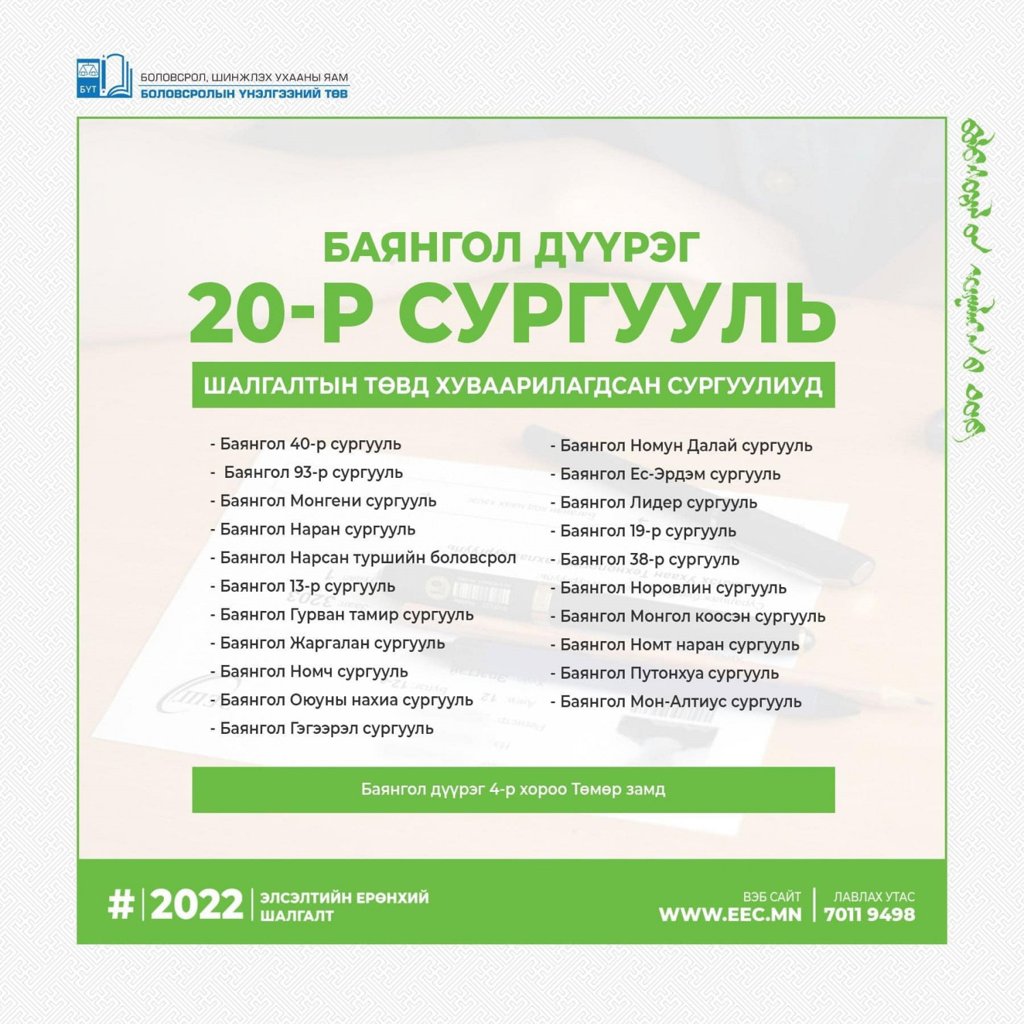 Бүх шалгуулагчдадаа амжилт хүсье.
