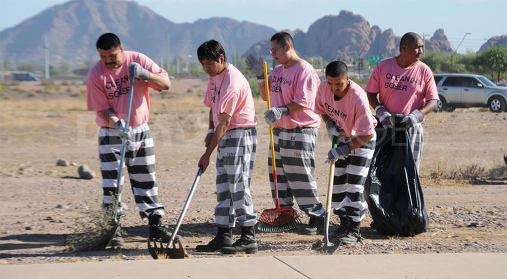 Аризонагийн Марикопа тойргийн шоронд энэ өнгөөр будсан өрөөнд хоригдож буй хүмүүс хэсэгхэн хугацаанд тайвширдаг ч тодорхой хугацааны дараа өмнөхөөсөө бүр илүү түрэмгий, аюултай үйлдэл хийх нь илүү их болж буйг анзаарсан байна. Ингээд тэд хананы өнгийг буцаан өөрчилж, уг өнгийг хоригдогчдын дотуур хувцсанд ашиглах болсон ба үүгээр 15-30 минут тасралтгүй харах шаардлагагүй газар өнгийг ашиглах шийдвэрийг гаргасан юм.