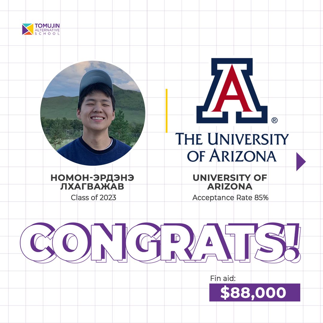 - АНУ-ын их, дээд сургууль руу өргөдлөө илгээх бүх үе шат 100 хувь өөрийн хичээл зүтгэлээс шалтгаалдаг. Би Дорнодоос Томүжинд ирээд нэг л зүйлийг ойлгосон. Хөдөө орон нутагт маш өндөр потенциалтай, чадварлаг хүүхдүүд олон бий. Гагц өргөдлөө илгээх чиглүүлэг хомс байдаг учир хүүхдүүд яг хаанаас эхлэж хэрхэн бэлдэх учраа олдоггүй. Тиймээс би найзуудтайгаа хамтран College wave төслийг хэрэгжүүлж эхэлсэн. АНУ-ын их дээд сургууль руу өргөдлөө илгээх хүсэлтэй хүүхдүүдэд багахан ч болтугай тус хүргэж, явах жимийг гэрэлтүүлж өгөхсөн гэж хүсэж байна. Эцэст нь өөрөө өөртөө үнэн байж, хүсэл мөрөөдөлдөө үнэнч хандан, чин сэтгэлээсээ хичээвэл бүх зүйл боломжтой гэж хэлмээр байна.